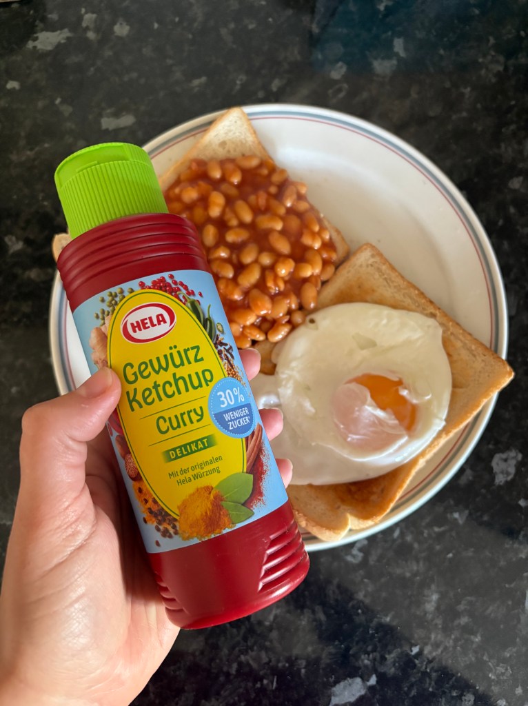 Curry Ketchup: introduced to me by an old school friend (who has loved this condiment as long as I’ve known her), I always stock up on a couple of bottles when I visit Germany. It’s delicious mixed into baked beans to give it an extra depth of flavour. Please don’t judge my cracked egg; fried eggs are not my forte!